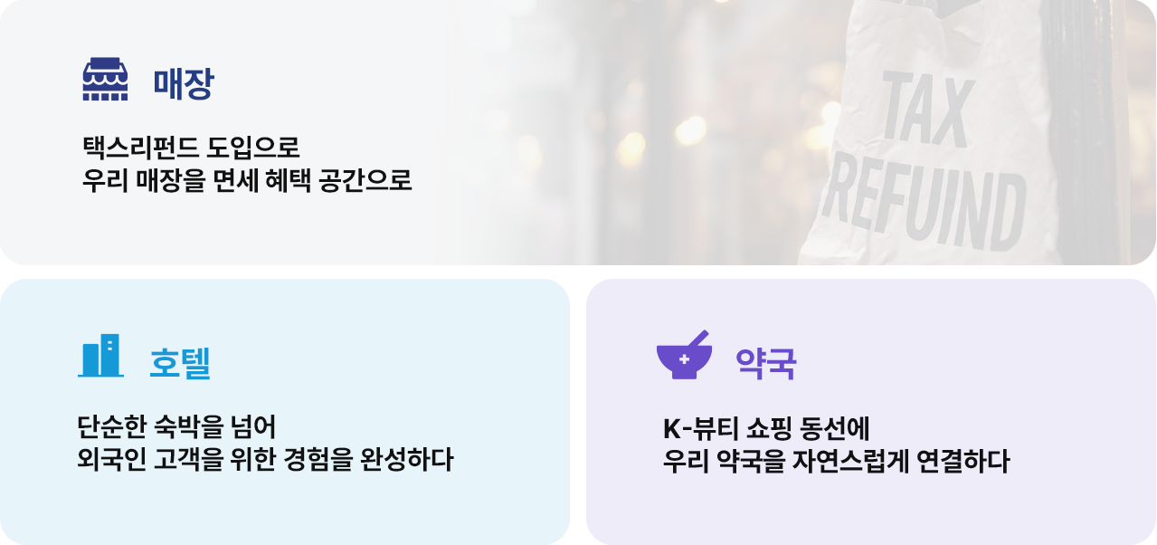외국인 관광객 대상 세금 환급으로 구매 부담을 낮추고 전환율을 높입니다